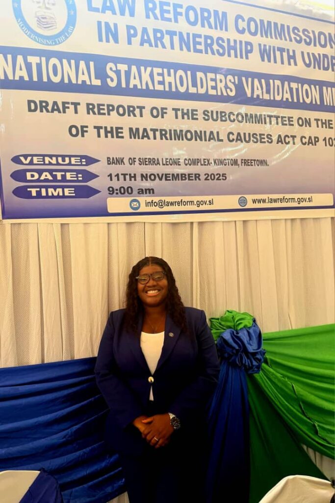 “My passion for gender justice was shaped both by my environment and life-defining experiences. I attended St. Joseph’s Secondary School in Freetown, Sierra Leone, where, as a young girl, my initial aspiration was to become a student in the commercial stream. However, life had a different path for me, one shaped by the realities I witnessed and experienced around me.
