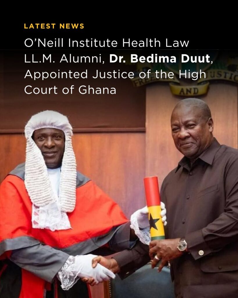 His Lordship Dr. Bedima Duut brings a rare blend of public health expertise and legal acumen to the bench. With a background that spans pharmacy, public health practice, and global health law, his career has been shaped by firsthand engagement with challenges such as maternal mortality, epidemics, and health system gaps in Ghana.